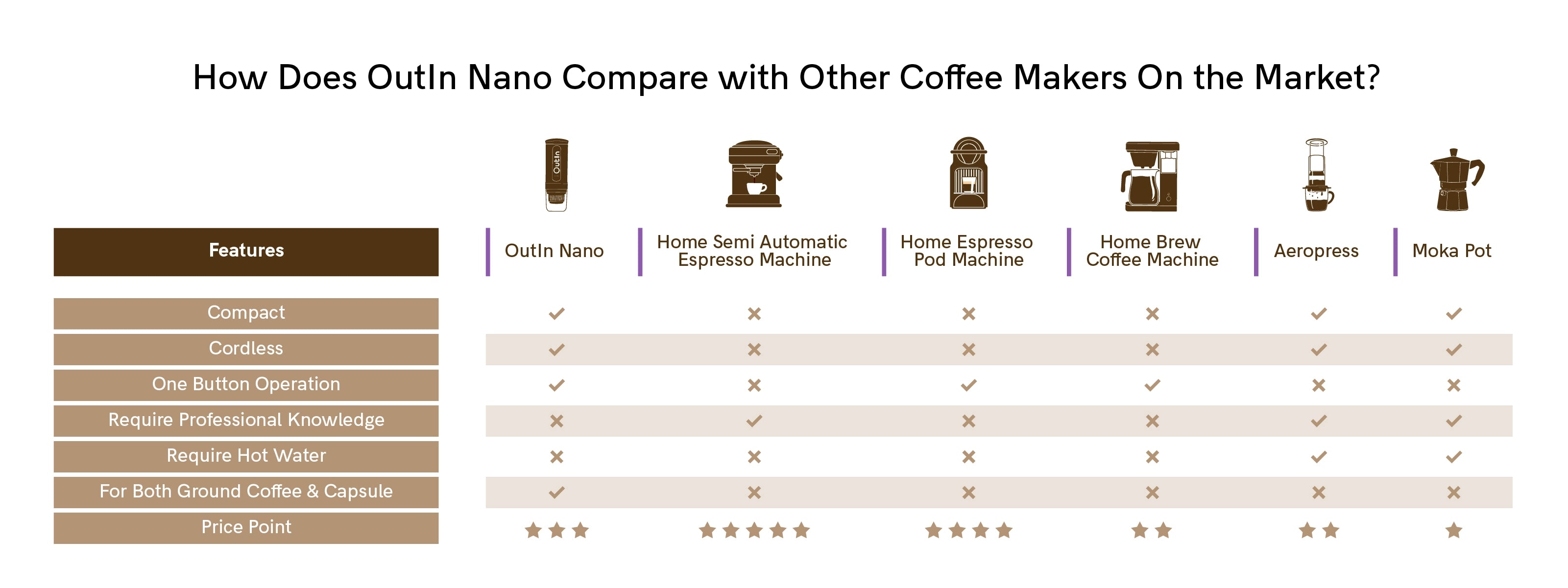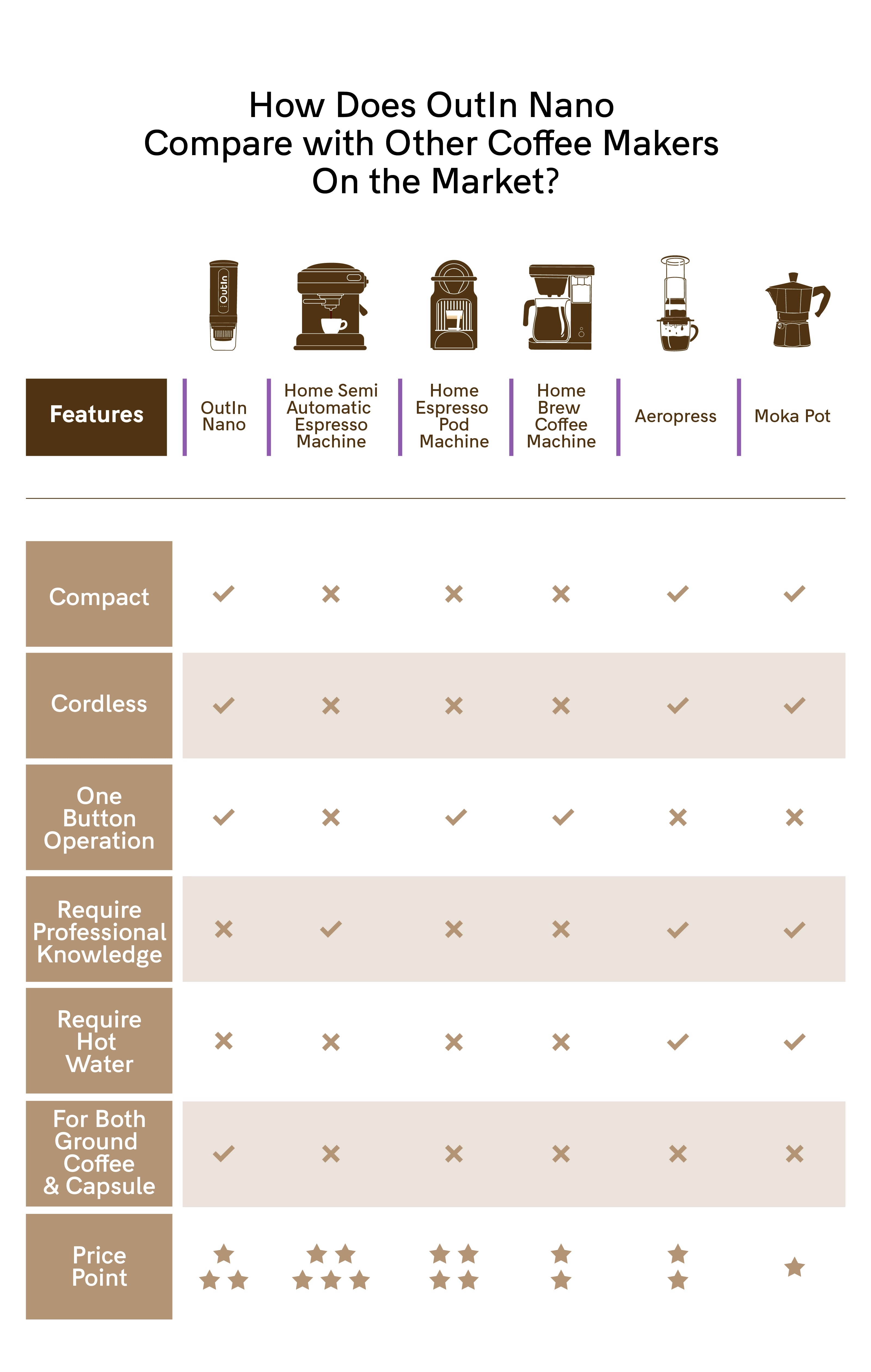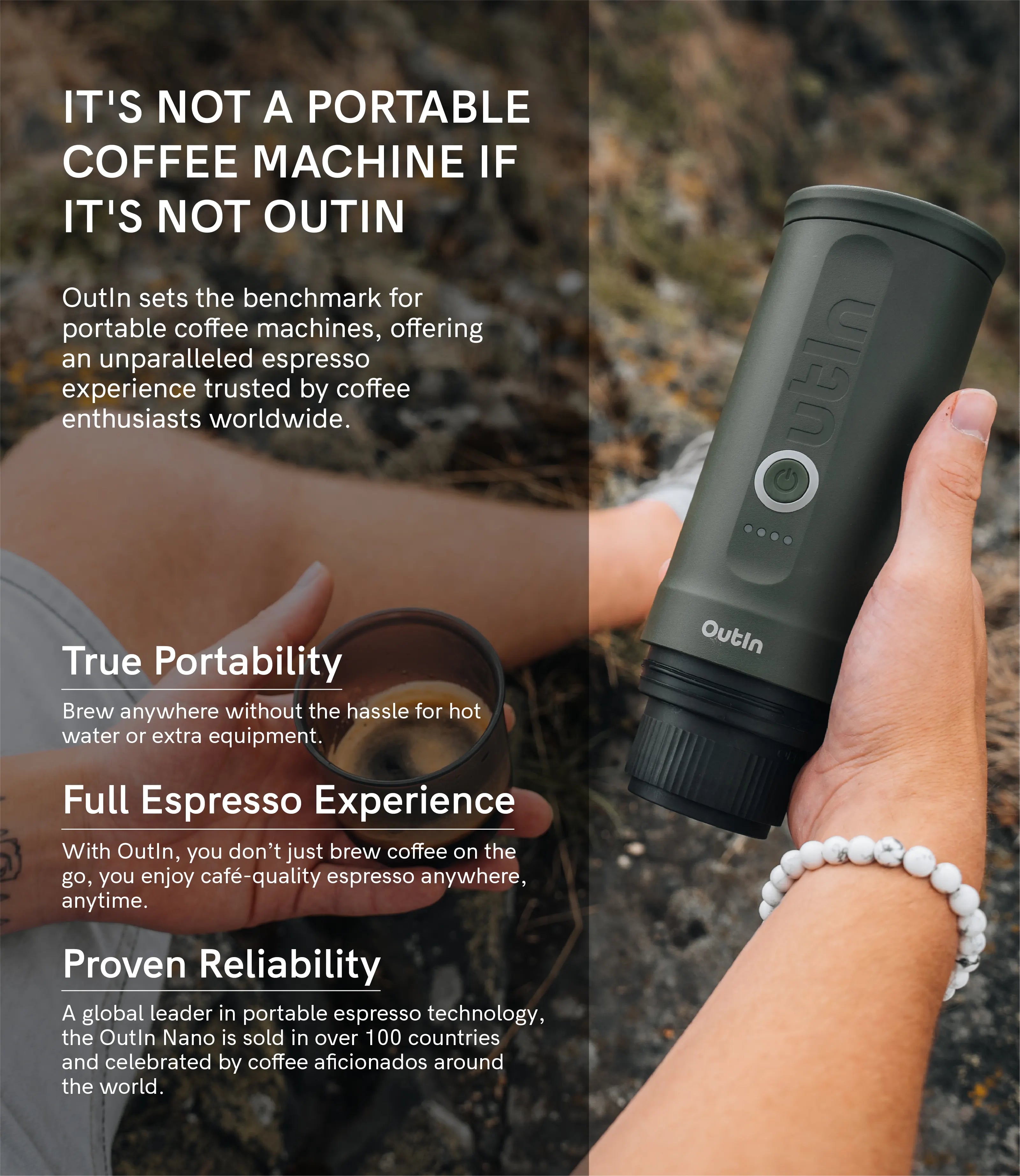 Unlike traditional desktop coffee machines, which are bulky and tethered to a single spot, the OutIn Nano offers true portability with its built-in heating system.