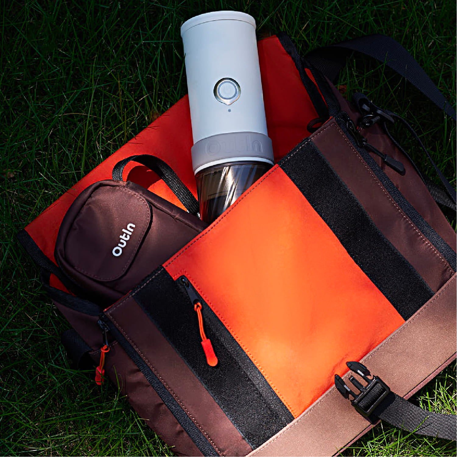 Compact yet roomy enough for your essentials, it's designed for cyclists who want mobility without compromise—carry your OutIn machine, coffee beans, and accessories wherever the trail takes you.