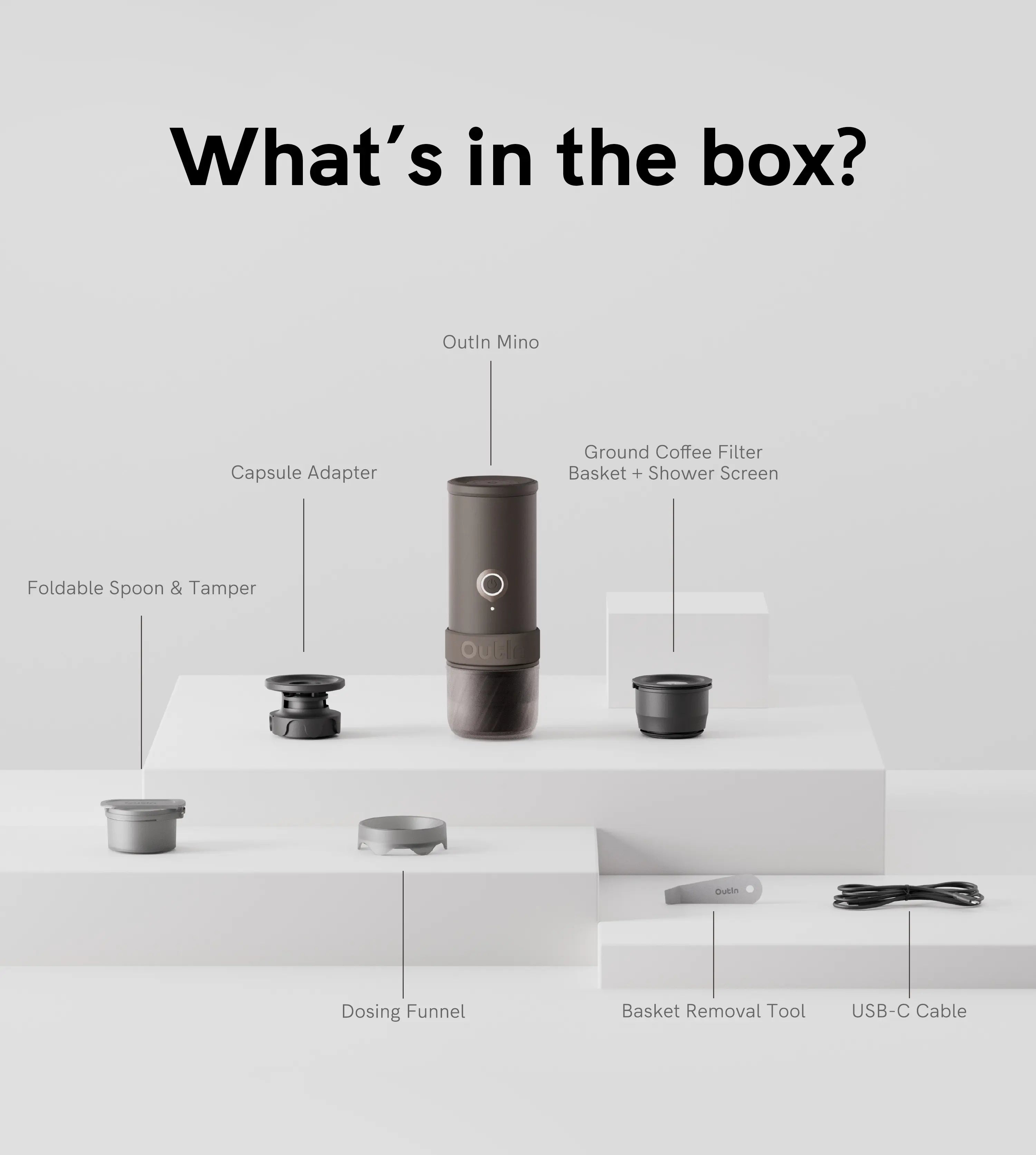 On the other hand, OutIn Mino is built for the wild at heart. From deserts to mountain peaks to deep jungles, it's your adventure-proof portable café. Equipped with 22 bar of pressure, and a specially engineered pump, the Mino delivers barista-level coffee extraction without any additional accessories. Right out of the box, Mino is ready to embark on new adventures with you. We believe in less is more.