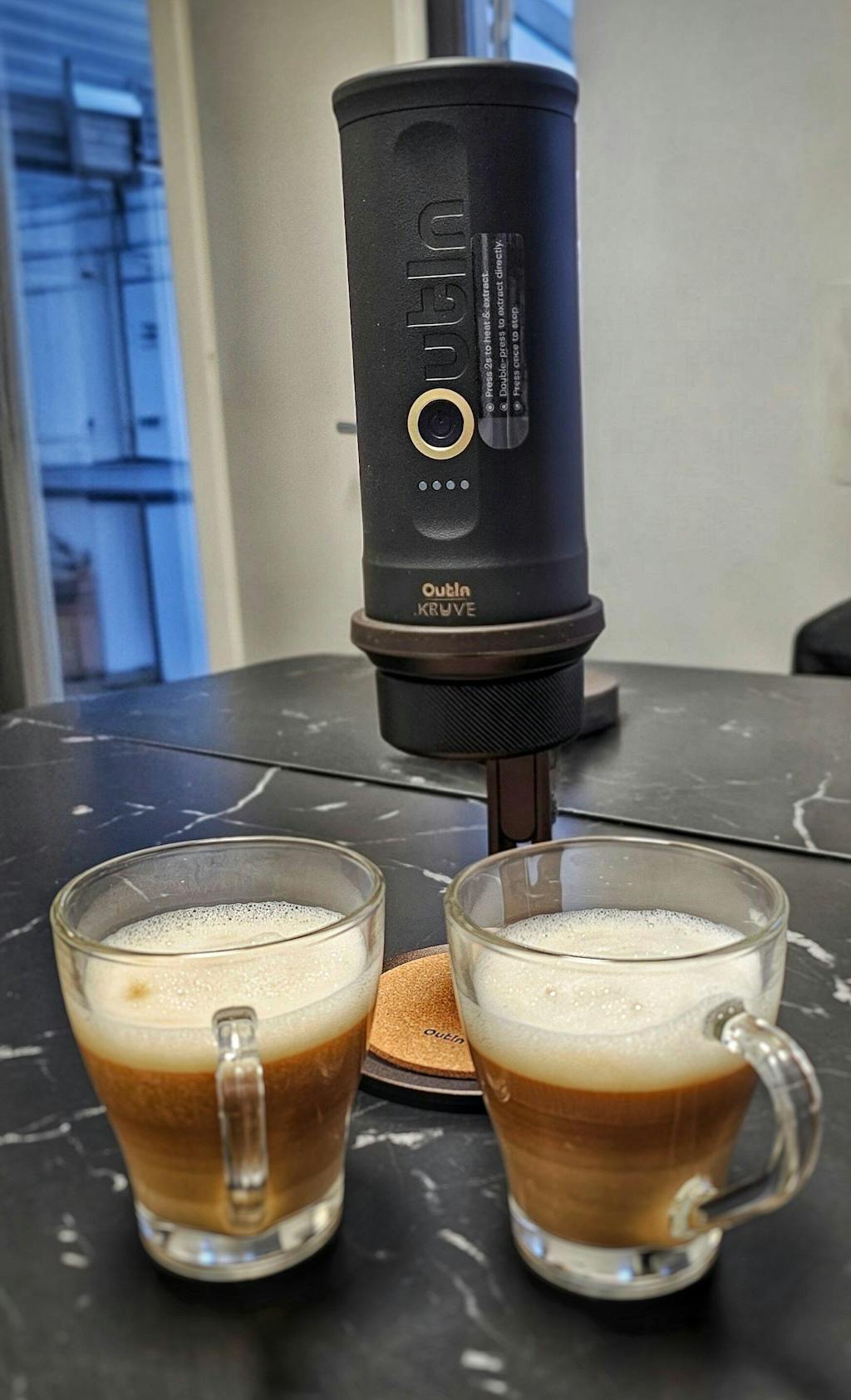 - To make a successful espresso, make sure you choose a proper grade of ground coffee and that the portafilter is screwed on tightly or the grounds/capsule holder is installed correctly. And OutIn Nano can only be extracted for heating when the power indicator is lit by at least two cells.