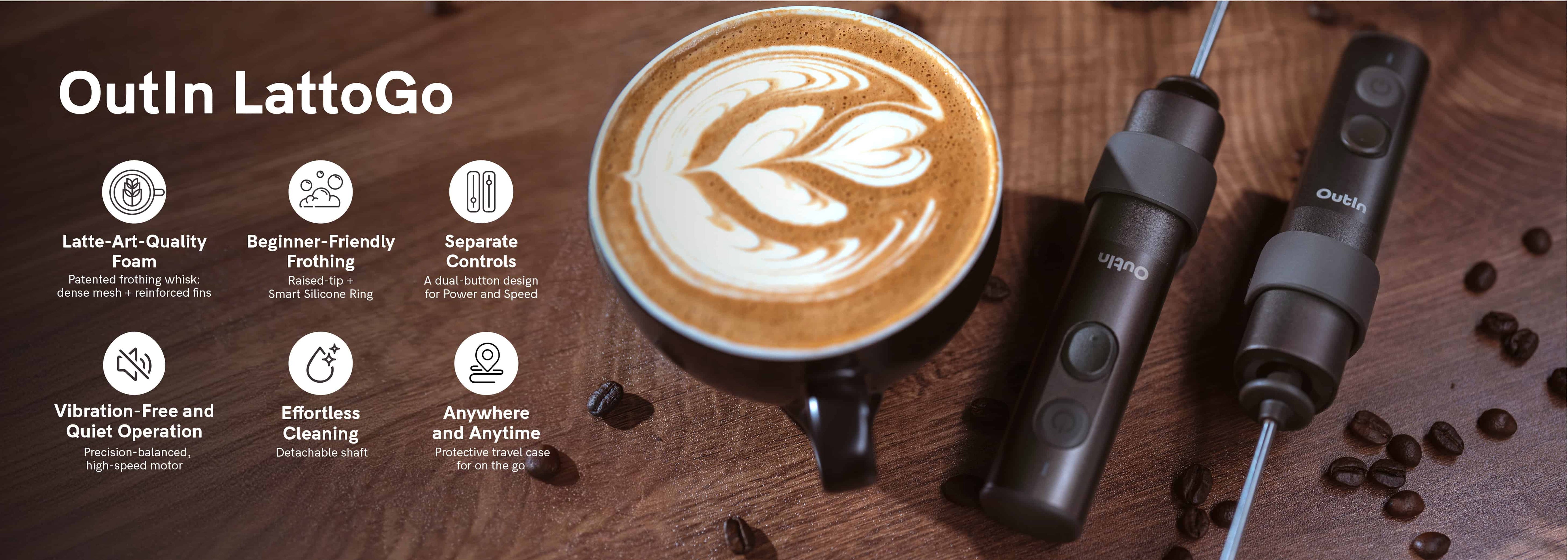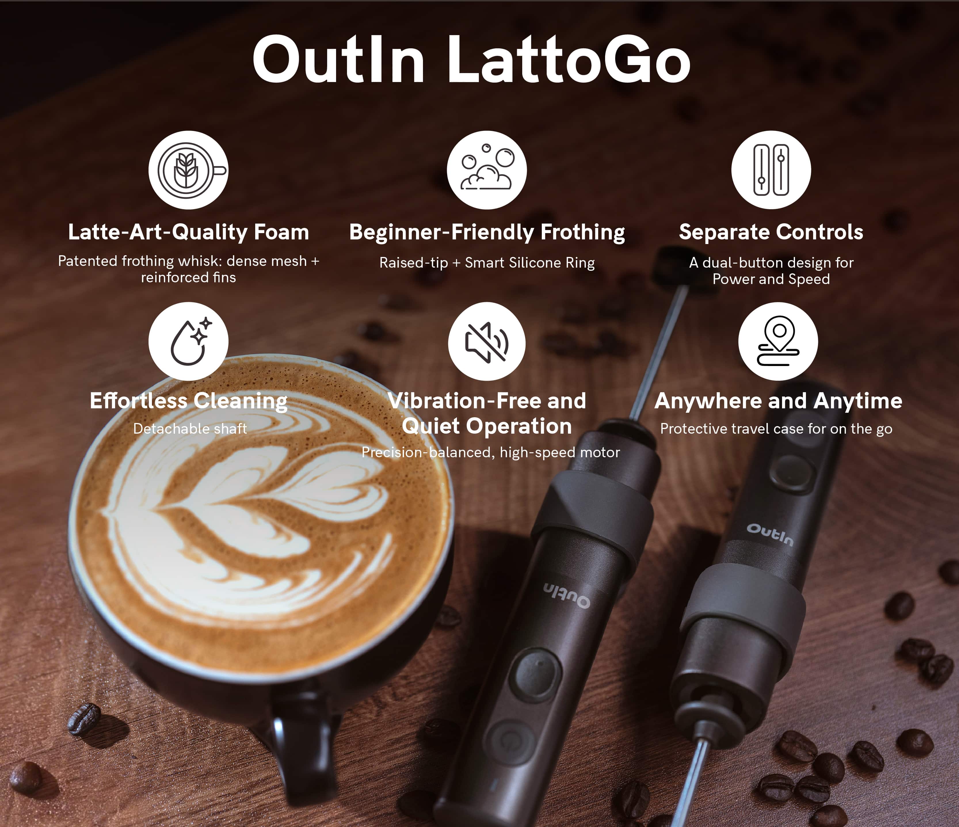 OutIn LattoGo is designed for frothing only and does not have a heating function. It creates barista-quality foam using cold milk. If you wish to make a hot beverage like a latte, please heat the milk separately before frothing it with LattoGo.