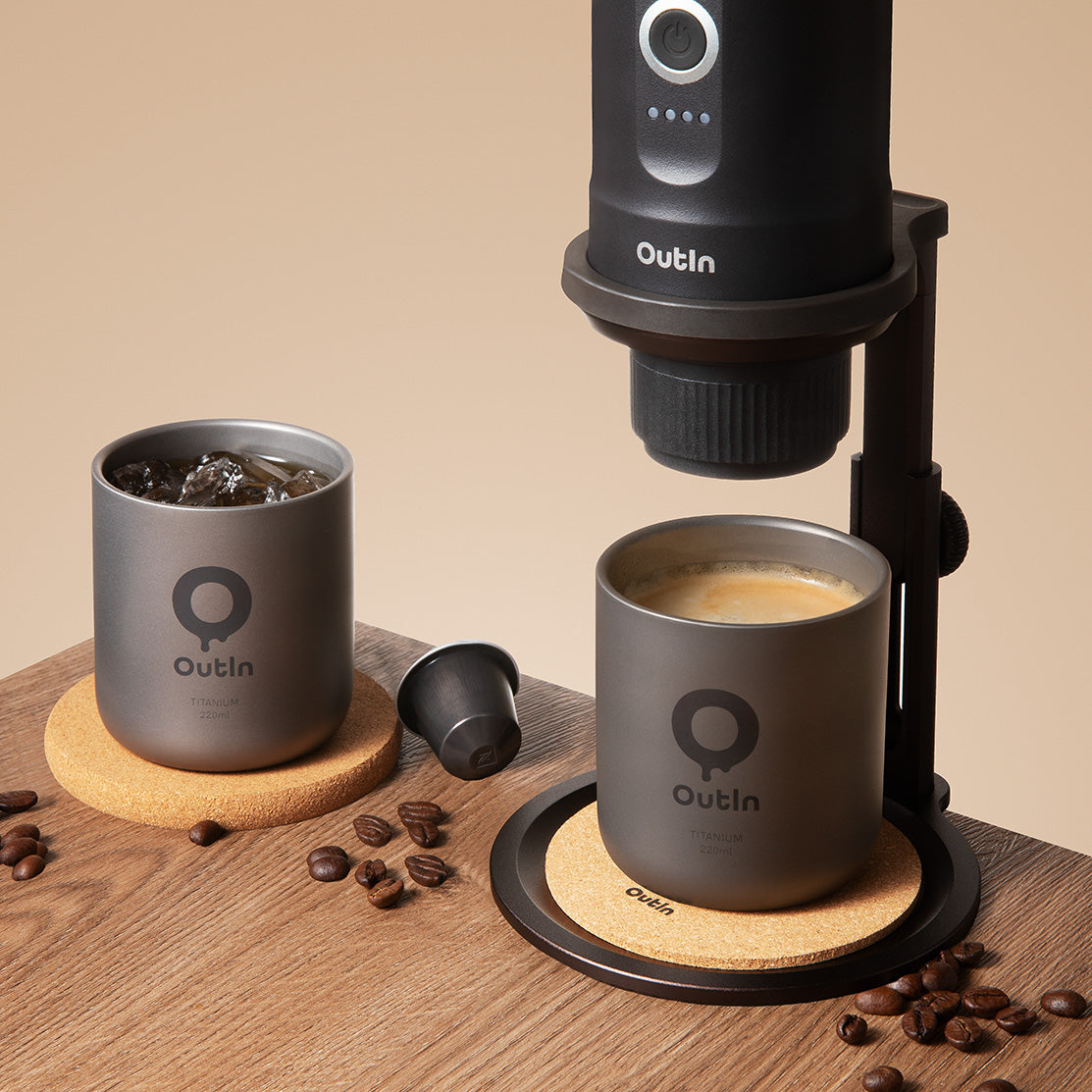 Transform your portable brewing experience from "great" to "exceptional." This titanium cup is engineered to be the perfect companion for your OutIn Nano Espresso Machine, directly replacing the original plastic lid/cup with a premium metal alternative. It threads on seamlessly, offering a sturdy, leak-resistant fit that elevates the look and feel of your gear. It’s not just an accessory; it’s the finishing touch your portable coffee setup deserves.