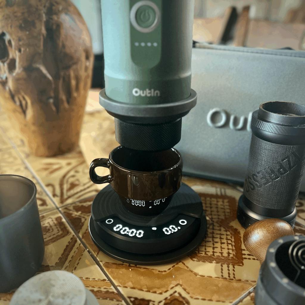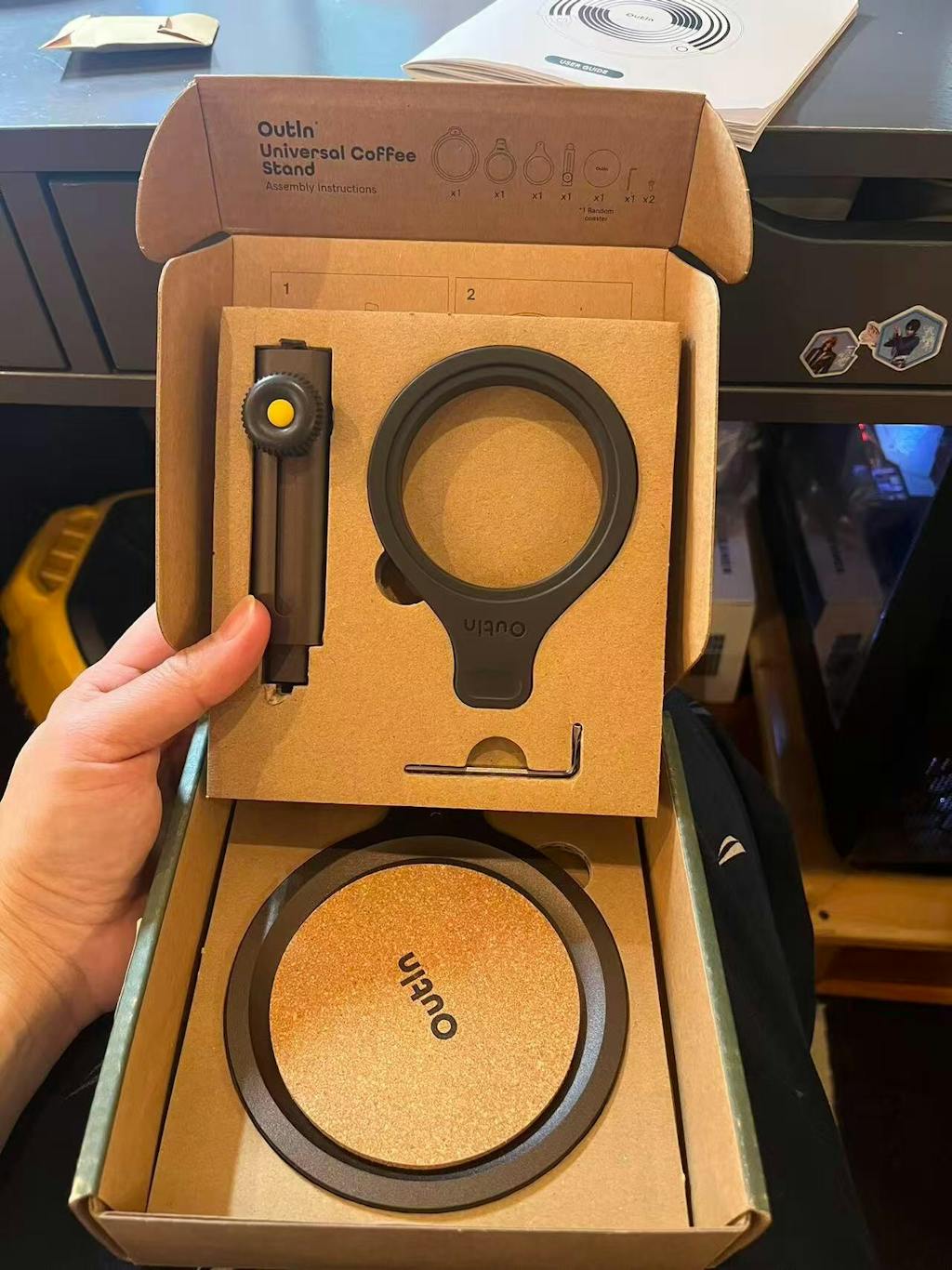 Designed to accommodate a wide range of coffee gear, from pour over coffee maker to portable grinders, the OutIn Universal Coffee Stand provides a stable hands-free coffee experience. It is also a perfect fit for the Outln Nano.